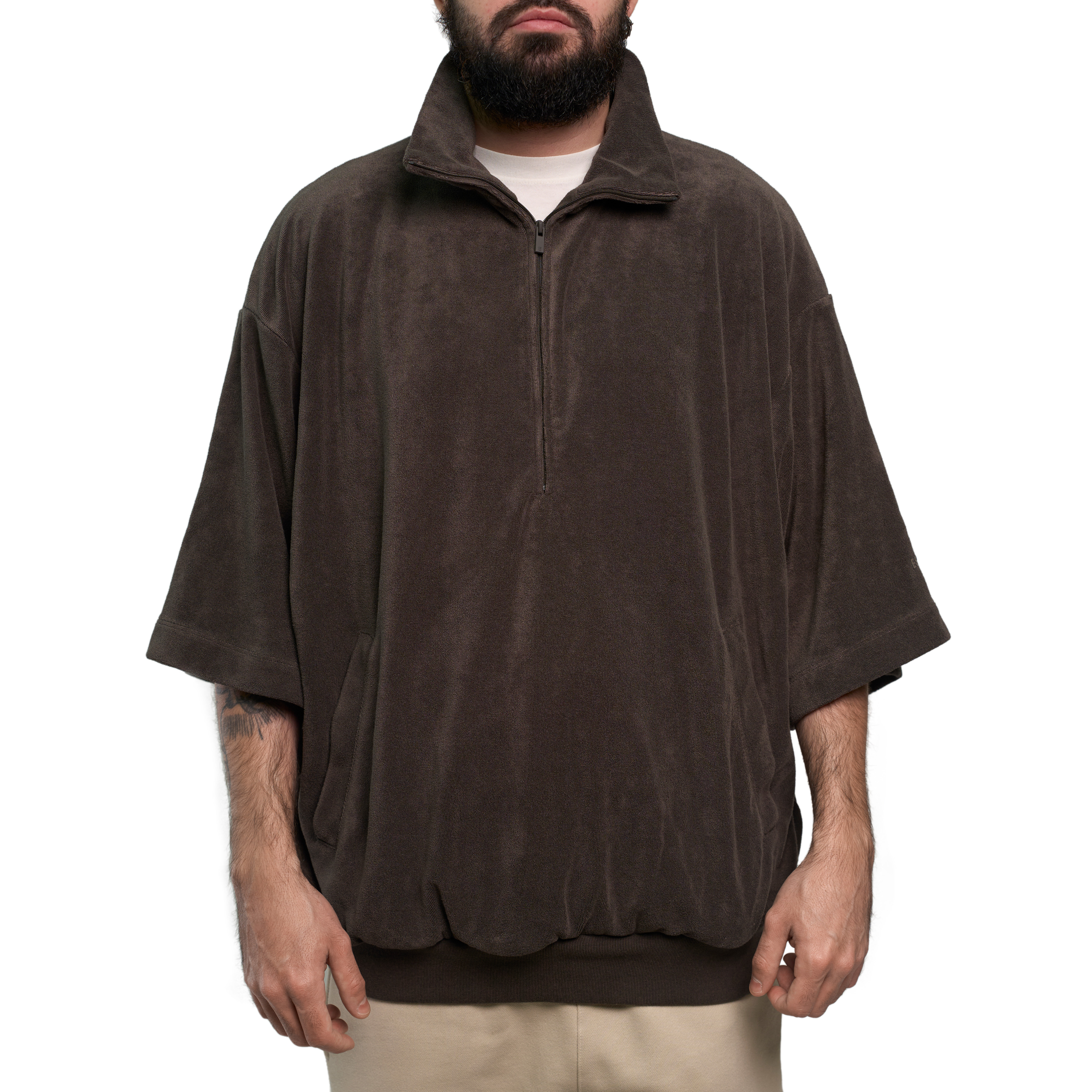 Fear Of God Essentials Half-Zip 3/4 Sleeve Polo "Off Black"