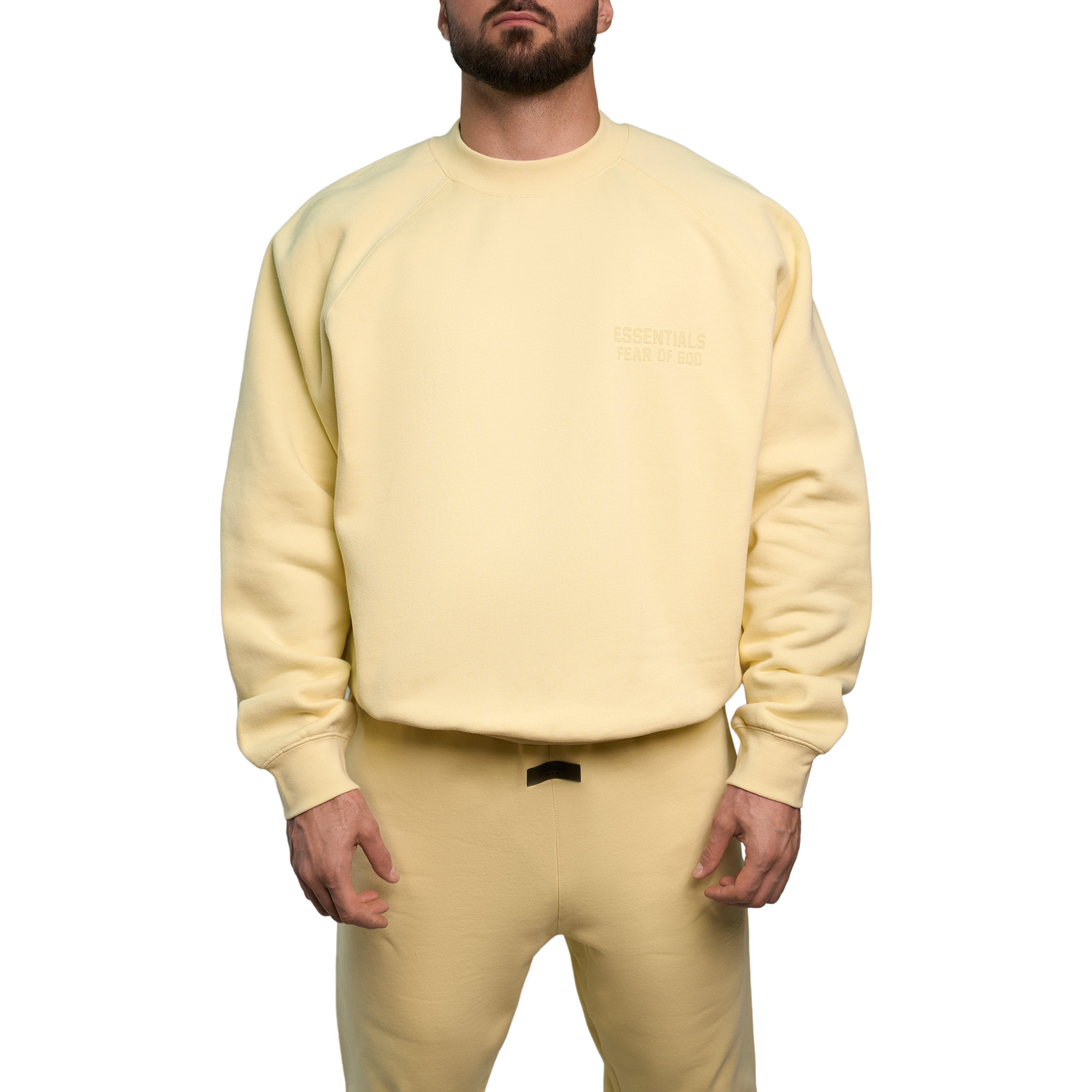 Fear of God Essentials Logo-Flocked Cotton-Blend Sweatshirt "Canary"